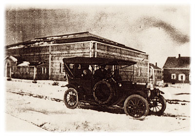 A photo believed to be of the Chace family, in front of the Indoor Tennis Court.