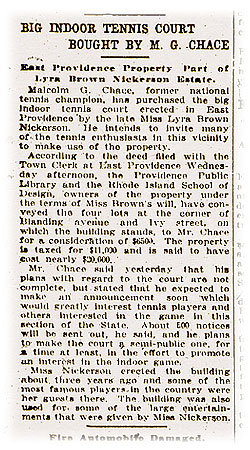 Tennis Court sold to Malcolm Chace. Source, The Providence